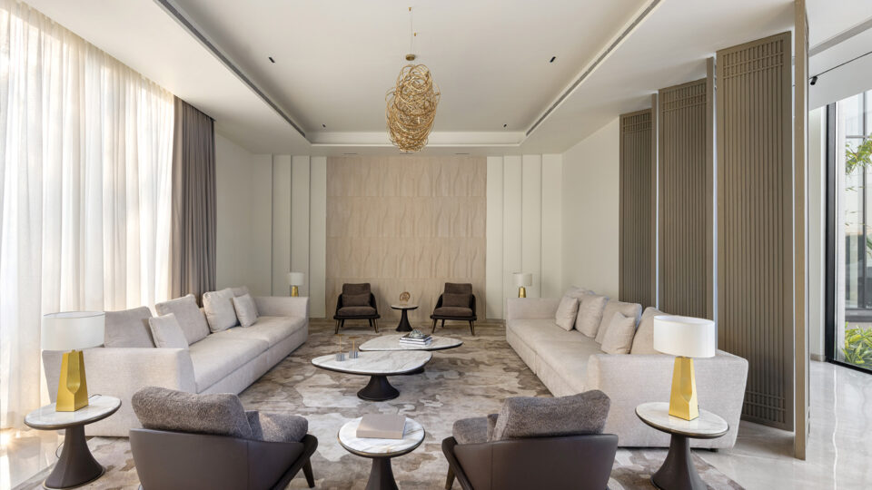 Furniture in ‘Ananda’ is chosen to enhance the serene atmosphere and complement the residence’s natural elements. Each piece is selected for its aesthetic harmony with the surrounding environment, emphasizing simplicity and elegance.