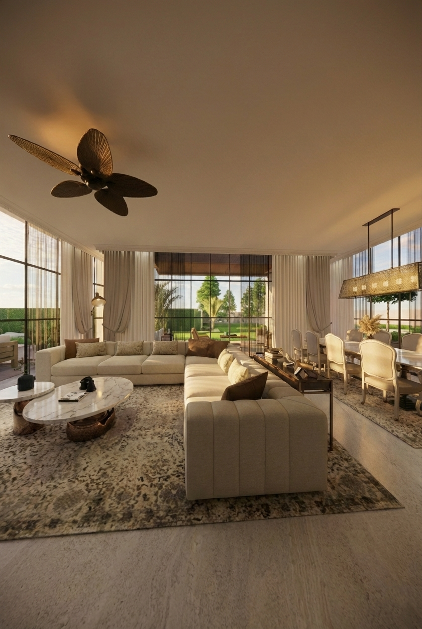 The estate is thoughtfully zoned to ensure seamless movement between public and private realms. Expansive living areas open into landscaped surroundings, while intimate family spaces are carefully tucked away for comfort and privacy. The planning emphasizes clarity, proportion, and effortless flow.