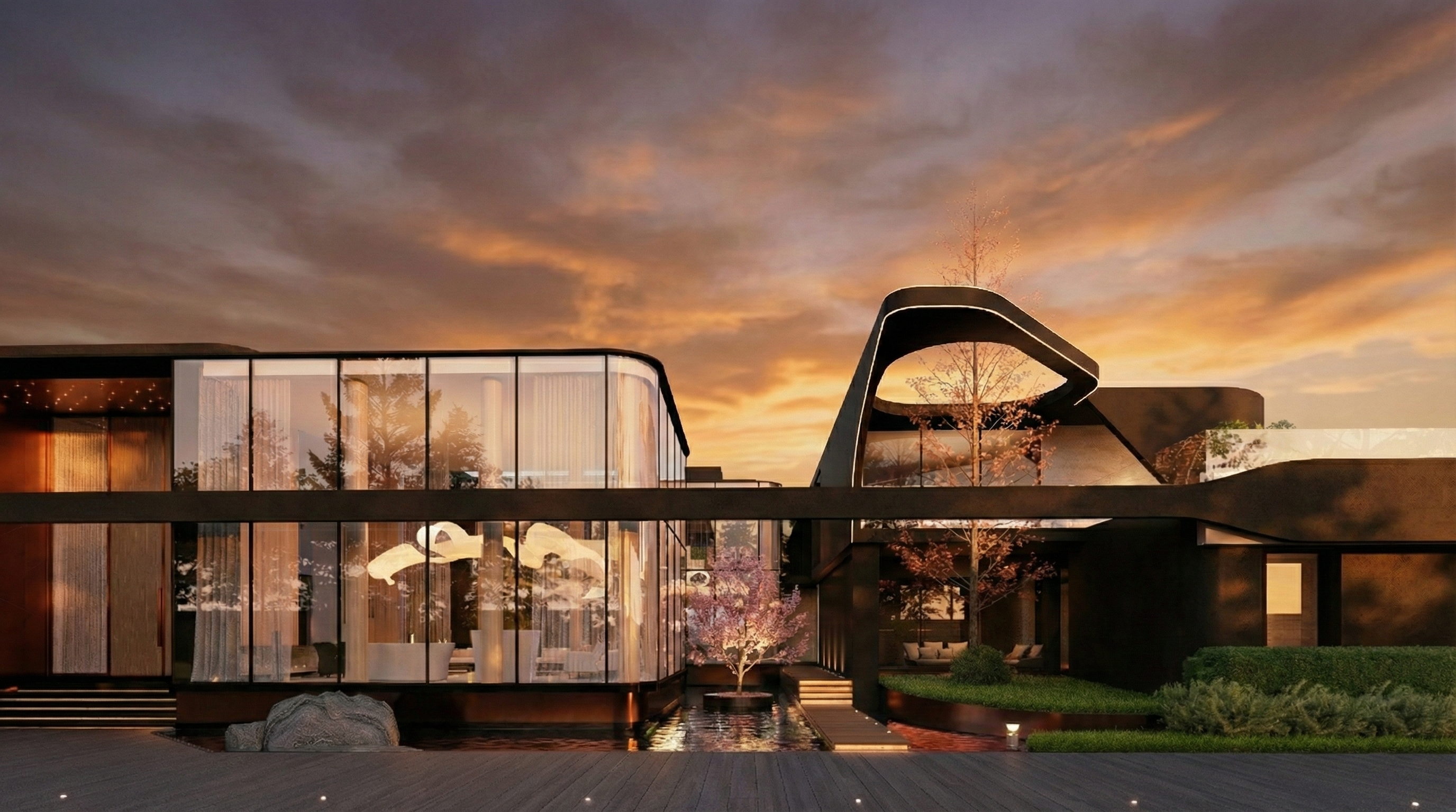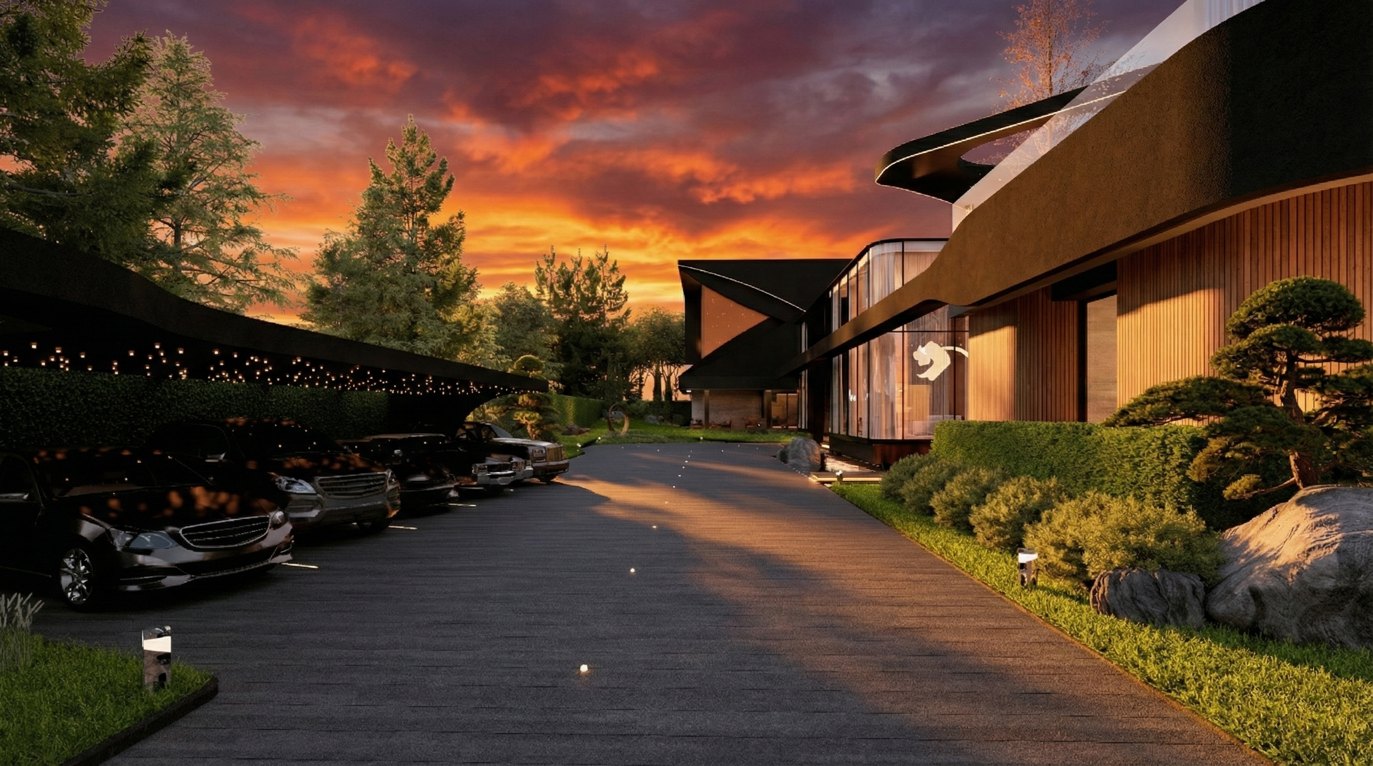 Light is a defining element of NX-806. Natural light pours in through well-positioned openings, washing the interiors with soft, diffused brightness throughout the day. The double-height areas amplify this effect, letting sunlight animate the vertical surfaces. At night, the home transforms under warm architectural lighting that highlights the cantilevers, runway driveway, and facade transitions. The lighting design reinforces the neo-futuristic form, creating depth, shadow play, and a sense of refined theatricality across all levels of the home.